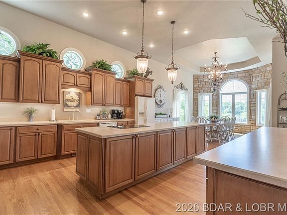 Custom Built home-that offers it all! Call all your family & guests-as this home was built for entertaining & enjoying the Lake lifestyle.Level driveway w/ample parking w main level living. ou are greeted by souring ceilings & a wall of windows.Spacious kitchen w/large pantry. Master Suite for the King & Queen w/Master Bathm. Home office/study,Stone FP w/built-ins. The upper level has another Suite-+ a multi-function rm w/ huge storage or rm for more bedrms,etc!. Lower level offers full bar, 3rd guest Suite, 2 additional bedrms &/or storage- rm for all your games! Easy access to the AMAZING Dock- one in a million-3 well slip! Take the tram or the stairs & enjoy the waterfall on your ride & the landscaping-complete w/ Eagle bronze statue.Located in a no wake cove-only minutes from all the attractions.Owners open to selling possible Turn-key-including the boat/s,& all the toys! Recent updates: Roof, paint, etc. Bonus:Your own private man cave available- 3600 sq ft-for your RV & more.