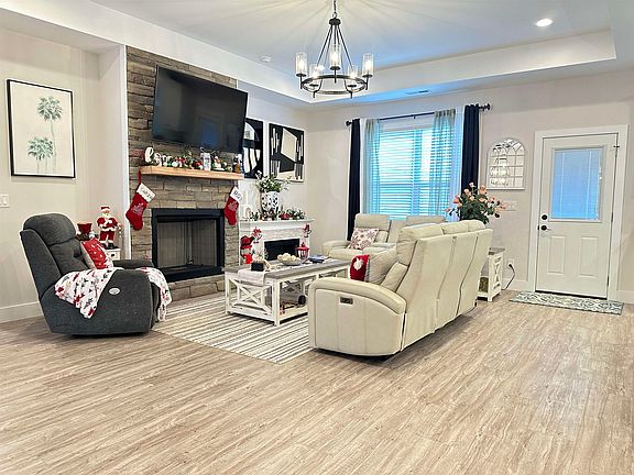 Welcome to your nearly new custom-built retreat! Completed in January 2024, this pristine 3-bedroom, 2-bath home is nestled on a private road with no HOA, offering a rare combination of privacy and convenience. Situated on a spacious 1.08-acre level lot, this property includes a 2-car garage, a whole house generator hook-up and an additional 24x30 metal garage/shop in the back, fully equipped with running water and lighting—perfect for projects, hobbies, or extra storage. Inside, 9+ foot ceilings throughout the open, split-bedroom layout create a spacious feel. The living room boasts a trey ceiling, large windows, and a cozy gas fireplace. The kitchen shines with granite countertops and a walk-in pantry, ideal for any chef. The owner’s suite is a true retreat, featuring a freestanding tub, tiled shower, and custom walk-in closet. Outdoors, enjoy a covered, screened-in patio and a fire pit for relaxing evenings. The property line goes well past the shop in the back, so there is more room for expansion. This move-in-ready home combines quality craftsmanship and modern comforts, perfect for anyone looking for a brand-new feel without the wait.
