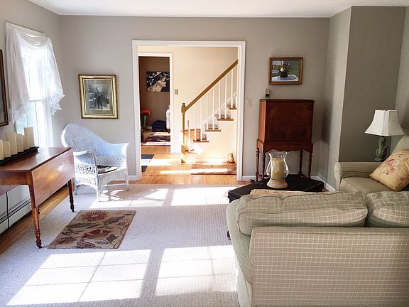 Absolutely beautiful, inside and out. Spacious rooms, exposed beams, brick fireplace, and hardwood floors are just a few of the special features on the main level. 4 large bedrooms upstairs, including the master bedroom suite complete with full bath and separate sitting room. Deck, patio, and mature plantings surround every angle of the exterior. Very private. Excellent commute location. A pleasure to show.