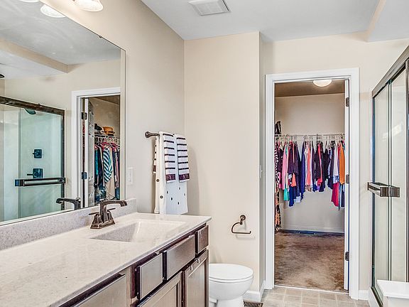 Fall in love w/ this charming dollhouse in highly sought-after Carlton Glen! This gorgeous 4 bed/2.5 bath, 2-story home offers impressive upgrades galore, including: Chef's Kitchen w/ custom cabinetry, SS appliances, large center island, granite countertops, gas range & a spacious walk-in pantry. On the main floor, you will also find an office w/ beautiful French Doors & new carpet, separate dining room & great room w/ wood-burning stone fireplace & wall of windows that brings in natural light. Upstairs features enormous master suite w/ walk-in closet & luxury bath w/ soaking tub & Rain Head shower heads. There are 3 add'l bedrooms plus a spacious loft, perfect for a playroom or theater area! Let's not forget about the 3-car garage, security system, ORB lever handles, upgraded laminate flooring, Bose surround sound system on main floor, dual-zoned heating & A/C, walk-out LL & laundry room w/ custom shelving! Community pool access, clubhouse & playground are an added bonus!