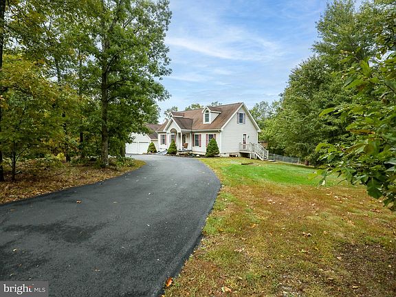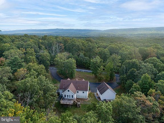 Nestled in the Blue Ridge mountains, this cape cod has all the amenities you have been looking for! With its circular drive, separate oversized 2-car garage, the fenced yard, and a 1st-floor Primary bedroom, all sitting on 2 treed acres on a quiet road near the Virginia state line. Oversized eat-in kitchen/dining combo with lots of counter space and plenty of cabinets. On the main level, the living room flows to the dining room area of the eat-in kitchen, which flows to the sunroom and out to the deck overlooking the backyard. The main-level Primary Suite with ensuite bath, garden tub, and walk-in closet. This level also has an additional half bath with laundry. Upstairs, two additional bedrooms and a shared full bath along with an additional attic area for storage round out this house. It sits on a substantial (5' foot) crawl space and is an easy drive to Winchester, VA. HOA is inactive- no dues!