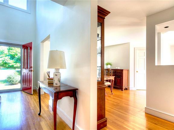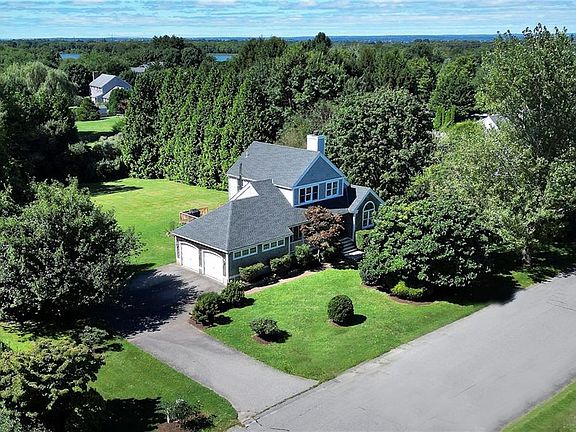 Architect-designed custom home sited on three quarters of an acre of park-like grounds, with great curb appeal. Front yard has beautiful specimen trees including a cherry and a magnolia tree. Front porch welcomes guests to a front foyer. A vaulted-ceiling living room to your right with fireplace and an abundance of windows and sunlight. To the left is a dining area which opens to the kitchen and a sunny sitting area that’s home to a wood burning stove for cold winter days. Sliders lead to an oversized deck overlooking a gorgeous and private south-facing yard that’s abutting the Land Trust and walking trail. A first floor primary en-suite and powder room complete this first level. Second level is comprised of 3 additional bedrooms and full bath Some updates include new roof, deck, and freshly painted interior. In close proximity to polo matches, local vineyard, and golf course. 15 minute drive to downtown Newport.