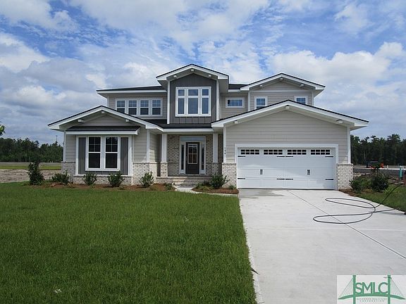 This Amazing Five bed home, the Colleton II Plan has 3.5 Baths, 3 car garage 4034 sq Ft. Sat on a large lagoon lot giving you amazing views and privacy. Master bed is down with 4 guests and 2 full baths upstairs. Downstairs also has a separate Flex room which can be turned into office space or a 6th bed. Upgrades include flooring, tile, cabinets, Quartz counter tops in Kitchen and all baths. Gourmet kitchen will include stainless steel; double ovens, microwave, vented canopy hood, electric cooktop, refrigerator & dishwasher. Large kitchen island; built-in tv/entertainment next to electric fireplace in family room. Iron balusters with stained oak handrail on stairs and overlook. Expanded covered back porch with raised foundation and much more! Amenities: clubhouse, fitness center, community swimming pool, tennis courts and playground. Great location: easy access to shopping, interstates, airport and approximately 25 minutes from historic Savannah. This home is sold.