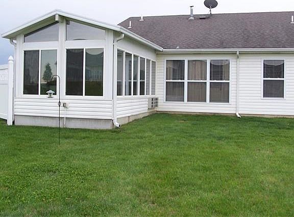 Totally renovated 2 bedroom, 2 bath villa, master bathroom wheel chair accessible, beautiful Florida room with remote control shades, air and heat, private patio with gas grill and fountain, granite counter tops, refrigerator, microwave, dishwasher, washer and dryer, fully furnished, two car over-sized garage, plus small third garage big enough for golf cart or motorcycle, this unit shows like new.