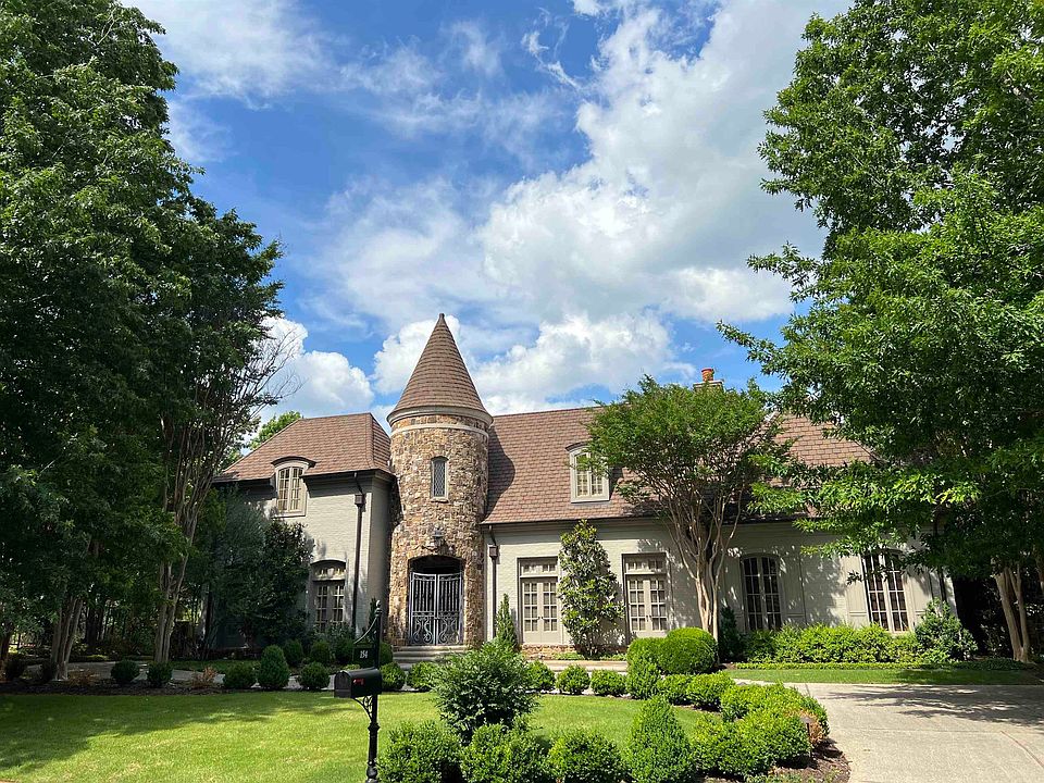 Welcome to The Cloisters, the ultimate E'Mphs address for privacy, security, & convenience w/24 hr guard gated entry. Tucked away in a quiet cove, this painted brick English style home w/stone turret accent features a grand LR w/ masonry gas-log FP, & wet bar, a classic kitchen w/rich, furniture grade cabinetry, brick cooking grotto w/Viking 6burner gas cktop, Wolf dbl convect ovens, & new 48" frig/frzr, adj hearth rm w/14' coffered, beamed ceil & masonry gas FP, study w/FP, & Primary BR down.