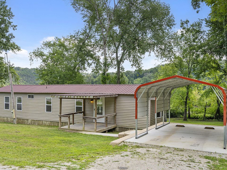 We're back on the market through No Fault of the seller! Hurry before it's gone again! This beautifully updated (2014) 2-bedroom, 2-bath lakefront home sits on a generous double lot and offers truly breathtaking, unobstructed views of Lake Taneycomo. Located on a quiet dead-end road halfway between Rockaway Beach and Forsyth, Missouri, the property features a gentle slope down to the water's edge--an extremely rare find in this area.Inside, you'll find an open living area with large double sliding glass doors that frame the lake views and open out to a spacious covered back deck, perfect for morning coffee, relaxing evenings, or weekend barbecues. The kitchen is well-equipped with a stove, refrigerator, and dishwasher, and the washer and dryer are also included. The interior has been freshly updated with new paint and flooring throughout. Additional upgrades include a metal roof, new siding, and central heat and air for year-round comfort. The master bathroom features a walk-in shower, while the second full bathroom offers a tub/shower combo.Outside, nature lovers will fall in love with the home's setting on a beautiful lagoon rich with wildlife and a wide variety of fish, including trout, bass, crappie, perch, and walleye. A small adjacent woodland adds to the peaceful, private atmosphere and attracts birds and other wildlife, creating an incredible natural ecosystem right in your backyard. A brand-new carport was added in November 2024. The home also includes a large yard, front deck, and a combination storage shed/chicken coop. An adjoining 40x100 lot is also part of the property and comes with a 12x16 barn-style shed. The Back Deck is a Huge 10' x 24' !! This is a rare opportunity to own a move-in ready lakefront home with panoramic views, easy water access, and unmatched natural beauty--all just a short drive from town!