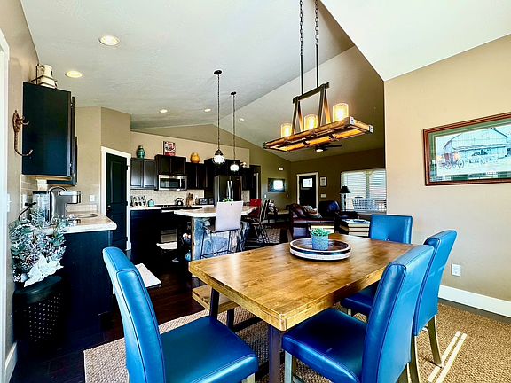 This home is a 3 bedroom, 3.5 bathroom with each bedroom featuring its own en-suite, and a half bath on the main floor. The main floor bedroom is equipped with a king bed, walk in shower, and jacuzzi soaking tub. The upstairs bedrooms are equipped with one queen and two twins beds. There are smart TVs with streaming capability in the King and Queen suites. The main floor living space features a charming fireplace, comfortable seating, and a big screen TV with DirectTV. The kitchen is fully equipped for all your culinary needs with breakfast bar seating as well as a spacious dining table with seating for 8.