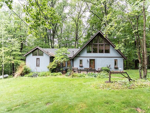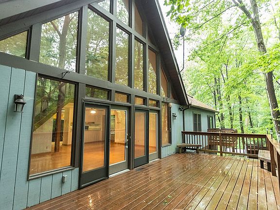 Nestled in the exclusive Bear Rocks Community, this 3 main floor bedrooms, 2 bath contemporary style home offers natural lighting, vaulted ceiling with loft, beautiful hardwood flooring throughout. The kitchen offers appliance package and washer & dryer are also included. Full basement which currently is being used as wood/workshop with walkout access. Access from the living room with woodburner is the deck with tree covered rear yard. There is an oversized detached garage. The yard consists of 3 lots and is nicely landscaped with a pond. Conveniently located within minutes to Seven Springs and Hidden Valley Ski Resorts. Other tourist attractions include Ohiopyle, Yough Lake, Nemacolin Woodlands Resort, bike and hiking trails.