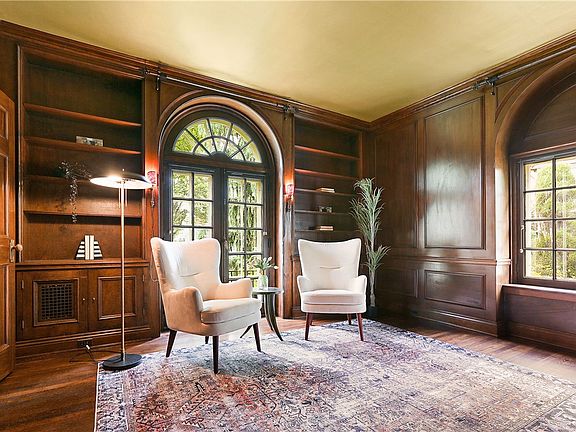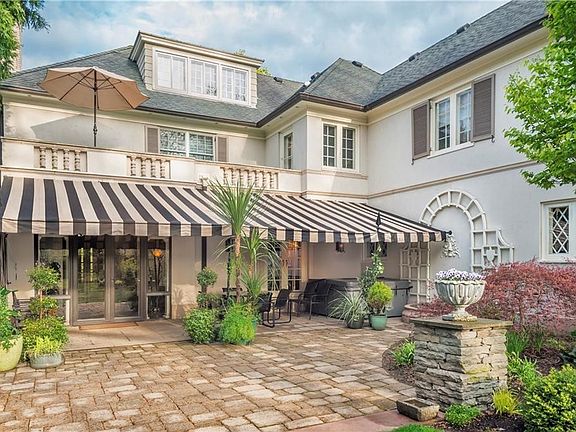 Impeccably preserved, this exquisite Brighton gem sparkles! Designed by Rochester architect, Leander McCord, Jr., this Italian Renaissance Revival home features original green & black limestone flooring in the grand foyer & a mahogany-lined library with removable sconces & attached powder room with chinoiserie wall paintings. The sunken living room features plank oak floors, exposed beams & Palladian doors to the conservatory. Proceed to the formal dining room meant for entertaining, huge butler's pantry & eat-in kitchen with refinished maple flooring. On the second floor, you'll find the oversized primary suite with sitting area, walk-in closet & attached en-suite bath with heated floors that overlooks the rear balcony & gardens. 4 additional bedrooms & 2 jack-and-jill bathrooms, with an additional bedroom/flex space. 1,500 SF in the finished attic could be used for an artist’s studio, crafting, play & more! The lower level features a home theater, exercise room, kitchen & full bath. Award-winning gardens create a serene setting, all in the heart of one of the most sought-after neighborhoods in the area. Sqft provided by previous owner's appraisal.