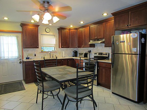 Beautifully updated chalet. Modern & large, upgraded kitchen w/ quartz counters & s.s. appl. Huge living room w/ propane stove. Second floor was expanded in 2007. Two nice sized bedrooms. Bedroom one is bright w/ skylights & has an open concept. Modern bath w/ all glass shower & tile floor. Large walk in closet. Two big decks, 24'6 x 10'4 & 16 x 12. Level, gorgeous lot w/ water view. Garage, shed.