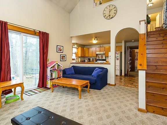 - Liv Dscrp: Flooring - Wall To Wall Carpet, Exterior Access, Ceiling - Cathedral, Slider, Wood / Coal / Pellet Stove