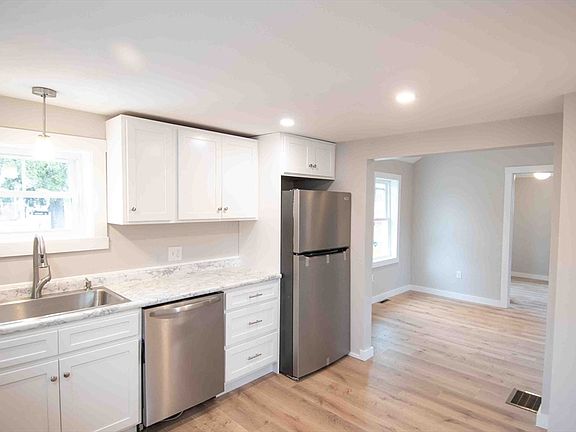 This cozy remodeled two bedroom bungalow, is a great place to make home. All new flooring throughout with new windows and many updates. The living room is bright and welcoming with vaulted ceilings flowing into the kitchen. Start cooking on your first day with new countertops, cabinets, and appliances. The bathroom has been completely redone with new shower, tub, and vanity. The two bedroom are good sized with closets. A small utility room with laundry hook up is off the kitchen. Enjoy some fresh air on the new deck. A storage shed at the end of the driveway gives you additional storage.