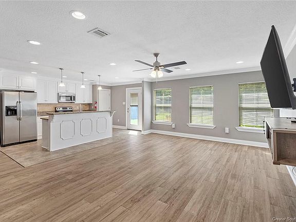 PRICED TO SELL! Welcome to this beautifully maintained 3-bedroom, 2-bath home nestled on a spacious 1 ACRE lot on a dead-end road in the South Beauregard area!! Step inside to find a bright and open split floor plan featuring wood tile flooring and tile throughout--NO carpet! The kitchen boasts granite countertops, stainless steel appliances which will remain with home, and crown molding, all complemented by recessed lighting. The home features a formal dining room, perfect for entertaining & a separate laundry room.The master suite offers a large peaceful space with a large tiled shower, soaking tub, double vanity with dual sinks, and a large master closet. Step outside to enjoy the expansive backyard, complete with privacy wood fencing, an extra-long driveway, and a convenient storage shop. This home combines comfort, style, and space, ready for its next owners! Flood Zone X. All measurements are M/L. Schedule your showing before it's too late!