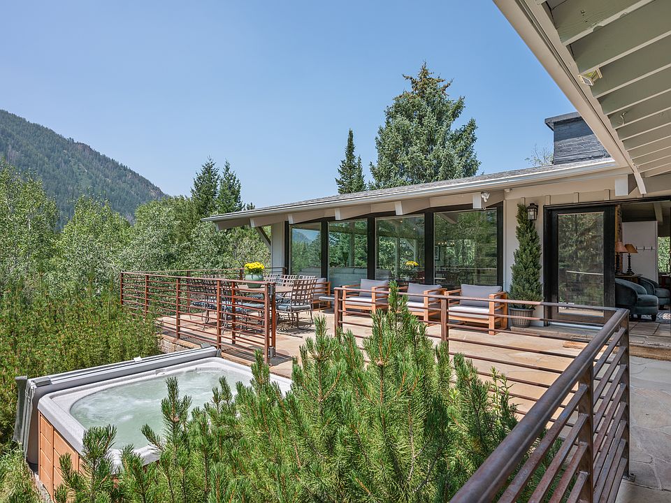 Nestled in the serene wilderness of Aspen, Colorado, 154 Lupine Drive offers a comfortable retreat with a touch of rustic charm and an abundance of natural light. Located in Mountain Valley, this home provides easy access to the North Star Preserve and is steps away from the trails and fishing in the Roaring Fork River. Downtown Aspen is easily accessible via Aspen's Dial-a-Ride free shuttle. This charming mountain home provides a welcoming ambiance, featuring a spacious living area adorned with floor-to-ceiling windows that frame panoramic views of the surrounding Rocky Mountains. The centerpiece of the living space is a brick wood burning fireplace, adding warmth and character to the room. Additionally, this home features a darling mother-in-law or nanny apartment attached but with a separate private entrance and parking. The kitchen is well-equipped for culinary adventures, boasting modern appliances and ample counter space for meal preparation. Adjacent to the kitchen, the dining area provides a perfect setting for enjoying home-cooked meals with family and friends. Retreat to the master suite, where large windows allow natural light to flood the space and offer picturesque vistas of the forested landscape. The newly remodeled ensuite bathroom features a large walk-in shower, perfect for unwinding after a day of outdoor activities. Step outside onto the spacious fenced in deck and large grass yard looking out toward Aspen Mountain, sitting just above the gold medal Roaring Fork River only a short walk down to fly fishing. Off the deck a hot tub awaits, offering the ideal spot to soak away your cares while surrounded by the sights and sounds of nature. In the evenings, gather around the outdoor dining table and gaze up at the starry sky, creating cherished memories with loved ones. 30 Day Minimum