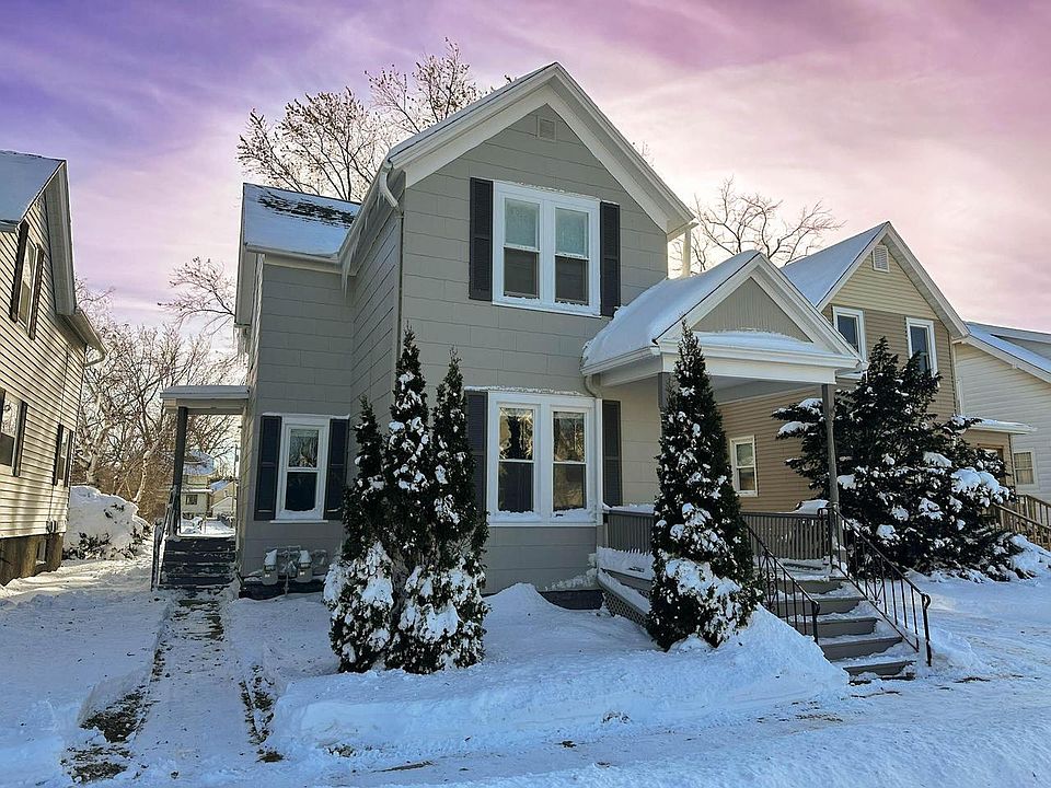 This 1,400+ Sq ft 4 BR 2 BA Duplex has been freshly painted inside and out, refinished maple hardwood floors on the main level, with updated quartz kitchen countertops!A great opportunity for a homebuyer looking to owner occupy a great future investment property. The upper unit is rented on a 1 year lease for $650 a month net lease, seperate utilities, 2 furnaces, water heaters and electric services. Appliances in both units are included, 2.5 car detached 20x28 garage and full basement make this the right buy!