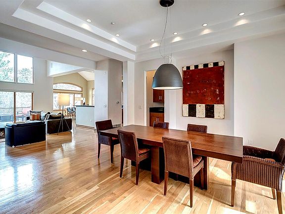 This incredible luxury modern contemporary home overlooking the 11th tee box of the Country Club course, is nestled on a secluded .86 acre lot surrounded by towering pines. Sit on the expansive outside deck and enjoy the private, tranquil setting. The open concept living boasts a beautiful kitchen with honed granite counters, updated floors/cabinets and stainless steel appliances. The flex space on the main floor would be a perfect office or pivate sitting area. The master-suite has been remodeled to showcase the heated floors, steam shower and beautiful Italian soaker tub while offering the perfect comfort in front of the double-sided fireplace. The finished basement is perfect for entertaining. The flex space downstairs could be a music room, workout room, or large office. The possibilities are endless. This 5 bedroom, 4 car garage, 6 bathroom home epitomizes luxury living in Castle Pines Village.