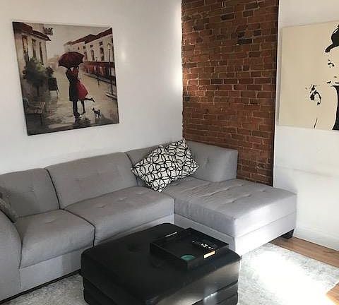 Upper level 1.5 bedroom unit (second bedroom is small - more of an office and not good for roommates) with exposed brick, open kitchen/living area, and walking distance to everything. Central a/c and common laundry. No pets or students. First, security and one month broker fee due for deposits.