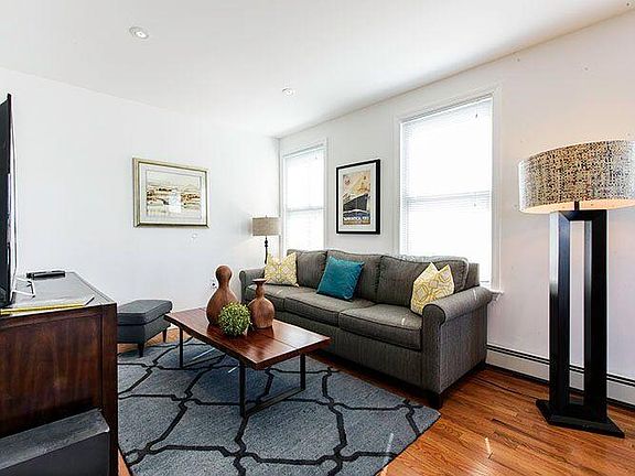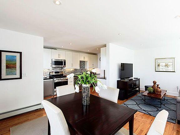 Perched atop East Boston's beloved Eagle Hill is a fabulous, fully renovated penthouse with the most dazzling water views. Breathtaking at every turn, you will enjoy them from both inside the comfort of your home as well as from your amazing private deck. A wall of glass allows the natural light to pour in making this a bright & cheerful home throughout the day and offers sensational sunsets at night. The well-designed layout is ideal with an open kitchen, living and dining area, perfect for entertaining with sliders that lead to the tranquil and relaxing outdoor space. The contemporary stainless steel kitchen is sophisticated with a stunning tiled back splash and sleek quartz countertops. Wood floors, incredible storage, in-unit laundry, Nest thermostat, keyless entry and a designer bath complete this spacious 3 bedroom floor thru home. Eagle Hill is thriving with new restaurants, shops and incredible development making this a great place to live and an incredible value! Perfect for roommates! Available now Tenant pays the utility bills, which are separately metered. The landlord takes first month's rent and a security deposit equal to one month's rent. There is a broker's fee equal to one month's rent and a $25 application fee per tenant. Additional storage included in the rent.