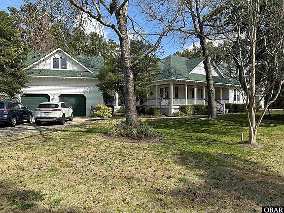 Nestled in the sought-after Brakewood community on the north end of Roanoke Island, this charming 3-bedroom, 4.5-bath Southern-style home offers a perfect blend of elegance, comfort, and expert craftsmanship. Built in 2000 by renowned builder Don Seaton as his personal residence, this home was constructed with high-quality materials and thoughtful attention to detail. Situated on a quiet cul-de-sac, it provides both privacy and convenience, just minutes from schools, shops, historic landmarks, and downtown Manteo. Inside, the home displays warmth and character with ¾ pine hardwood floors throughout the downstairs, pine wainscoting, and custom pine trim on all interior doors and windows. The open floor plan and 9’ ceilings create a spacious and inviting atmosphere, while wooden beams in the living room add rustic charm. A cozy propane fireplace enhances the living space, making it the perfect place to relax. The kitchen is a chef’s dream, featuring high-end appliances, quartz countertops, a wood ceiling, and upgraded finishes. The built-in automatic coffee maker and convection steam oven add both luxury and convenience. While the range and other appliances are stainless steel, the refrigerator and dishwasher are designed to match the cabinetry, offering a seamless, custom look that enhances the overall elegance of the space. Three-piece crown molding in the living room and dining room adds a refined touch. The finished room over the garage provides flexible space for a guest suite, home office, or playroom, while the attached garage offers additional storage. A large attic storage area ensures plenty of room for all your needs. Step outside and experience your own private fenced-in backyard oasis, complete with an in-ground pool, a large pool deck, and lush palm trees. Whether hosting guests or enjoying a quiet evening, this beautifully landscaped retreat is perfect for outdoor living. The wrap-around porch, featuring a wood ceiling, adds timeless Southern charm and is an ideal spot for morning coffee or evening relaxation. Jasmine is trimmed across the back porch and beautifully covers the pergola by the poolside, enhancing the serene setting. Built to last, this home features aged wood construction to prevent warping, and all joists, trusses, and collar beams are bolted together rather than nailed, exceeding industry standards for durability and strength. Several recent updates, including a fully renovated kitchen, new HVAC systems, a Generac generator, and a new roof, make this home move-in ready. A full list of upgrades and improvements is available in the associated documents. With its prime location, high-quality craftsmanship, and stunning outdoor space, this home is a rare find—perfect for first-time buyers, retirees, or families seeking a peaceful community with easy access to the beauty and history of the Outer Banks. Schedule your private tour today!