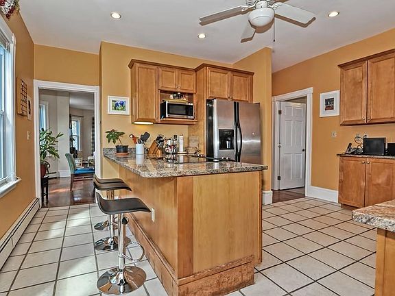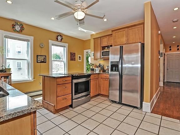 Welcome home @ 154 Fellsway West. Highly desirable Haines Square locale with easy access to MBTA bus (just outside the door) and Wellington Station. Great commute to Boston/Cambridge with 93 and Malden center Train less than a mile away and nearby renovated Assembly Square Mall. Warm & welcoming sun-splashed interior. Entertain to your hearts content in the stunning, spacious and bright updated EIK, boasting Stainless Steel Appliances, Architectural Maple cabinets, recessed lights, stunning granite counter tops & large peninsula offering seating for up to 5 barstools. High ceilings, sparkling hardwood floors & newer wall to wall carpet in bedrooms, freshly painted vibrant interior & ceiling fans. Large Master with ensuite. In-unit laundry, large private storage unit in basement. Front and Rear awesome PRIVATE decks. Pet friendly association with size & breed limitations. The unit is fabulous for entertaining with great restaurants, supermarket, Fellsmere Pond & gym nearby.