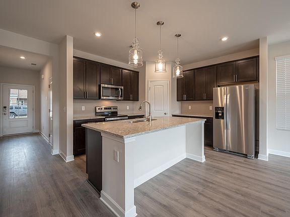 BE THE VERY FIRST TO LIVE IN THIS BRAND NEW END-UNIT TOWNHOME IN THE DESIRABLE TOWNES AT RIVER OAKS NEIGHBORHOOD IN LEBANON Very functional, spacious, open floor plan on the main level ideally suited for enjoying one another's company and entertaining guests. End unit, so the living room has extra windows for an abundance of natural light. The kitchen design includes an island that comfortably seats three, granite counters, stainless appliances, and a walk-in pantry. Dining room opens to the kitchen and living room. The primary suite on the second level has double sinks, a walk-in shower, and a large closet. There are two additional bedrooms upstairs (total of 3 beds). The two additional upstairs bedrooms share a hall bath with double sinks. Washer and dryer included. Attached garage! Tenant pays utilities. No smoking is allowed, and small pets allowed for extra fee.