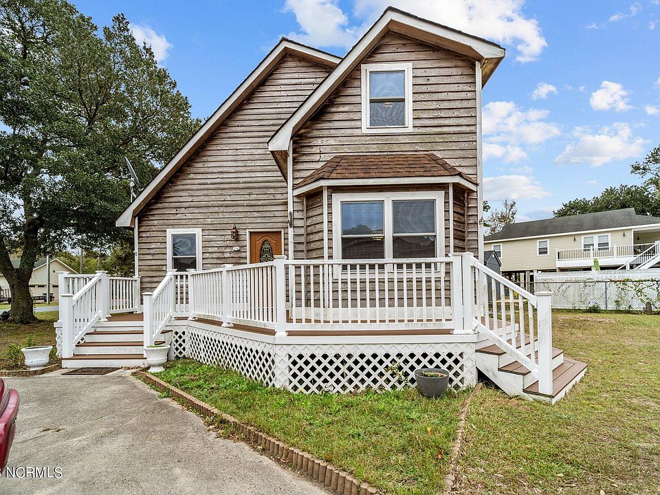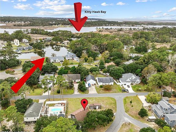Located only minutes from the BEACH and a few feet from Kitty Hawk BAY, this well-maintained 3-bedroom, 2-bath home offers an excellent investment opportunity, as a vacation home or a primary residence. Upon entering the home, you will be blown away by the inviting warm wood floors and vaulted ceilings creating a spacious and open ambience to this charming home. The kitchen is open and inviting, and it boasts an eat-dining area situated in front of bay windows. Additionally, the first floor features a primary bedroom for added convenience and privacy. On the second floor, you'll find two large rooms that can be utilized as additional bedrooms, a home office, or guest rooms. The back patio is a great place for entertaining or for enjoying tranquil evenings by a fire listening to the ''working'' coy pond. This home's convenient location gives easy access to shopping, dining and other amenities and attractions in the area. The seller has obtained a home inspection and will provide the same upon request.  Seller shall purchase a one-year home warranty not to exceed $700., at closing.