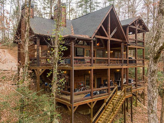 Come experience paradise in the North Georgia Mountains with this exquisitely built cabin perched above the pristine trout waters of Mountaintown Creek. This mountain escape is "decked" out for every season featuring covered wrap-around porches built for entertaining and relaxing out of the elements while still taking in the sounds and view of the water below. Enjoy conversations around the stacked stone outdoor fireplace with friends and family or escape to privacy on the third story bedroom covered balcony. The beauty doesn't end outside. As you walk through the front door you will be greeted with light pouring in from floor-to-ceiling large paned windows, complementing every detail of this home. Featuring a whole house generator, and powerful, permanently mounted cell reception boosters add to the immense detail of this home. Bring your kayaks, fly rods and friends, to come enjoy this slice of Appalachian Paradise.