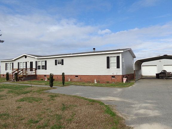 Located in Gates County, this 4 bedroom/2.5 bath home would be perfect for Virginia commuters. This spacious home features a living room, dining room, family room with fireplace, laundry room with attached 1/2 bath and a large kitchen with lots of cabinets, countertop space & pantry. The master bedroom suite includes a nice walk in closet, retreat area and glamour bath with garden tub, double sink vanity and walk in shower. The split floor plan has the master bedroom on one end of the home for privacy and the other three bedrooms are located on the opposite end and share a second full bath. Many recent updates include new laminate flooring, new dishwasher, new hot water heater and an updated bath. Outside you'll find a detached carport, detached garage, asphalt drive and above ground pool all located on a 1.09 acre lot. With almost 2,000 sq ft., this is a lot of home for the money!