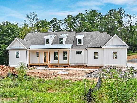 Beautiful NEW CONSTRUCTION home on over 2 acres in nearly completed 10-home neighborhood close to historic Ball Ground. This popular master-on-the-main plan is designed for today's lifestyles and features a dramatic vaulted ceiling in the family room, with gorgeous hand-scraped beams and painted brick fireplace. The beautiful chef's kitchen has a large island with quartz countertops, KitchenAid appliances and white shaker style cabinets. The breakfast room is bright and open, with shiplap accented wall. A huge covered rear porch is accessed via the breakfast room, and features a cathedral ceiling to match the family room, a beautiful stacked stone fireplace and enviable views to the private and wooded back yard. The main floor master is a comfortable size, and also features direct access to the covered rear porch. A shiplap accent wall and detailed trim on the ceiling add charm and warmth. The ensuite bath is highlighted by a large shower with frameless glass and a stand-alone soaking tub. The oversized master closet has custom built-in shelving throughout. The double-door front entryway and foyer is flanked by beautiful switch back stairs with wrought iron railing to the left and the elegant dining room to the right. Extensive trim is found on the walls in both areas. Site finished hardwood floors are found throughout the main level. Downstairs you will find a large second family room, with large windows and double doors out to the rear covered patio, as well as a beautiful shiplap accent wall. There are 3 secondary bedrooms on the terrace level, one with a private ensuite bath and the other two that share a true Jack and Jill bath. A private office with stain-grade double French doors offers the perfect place to work from home. Must see!