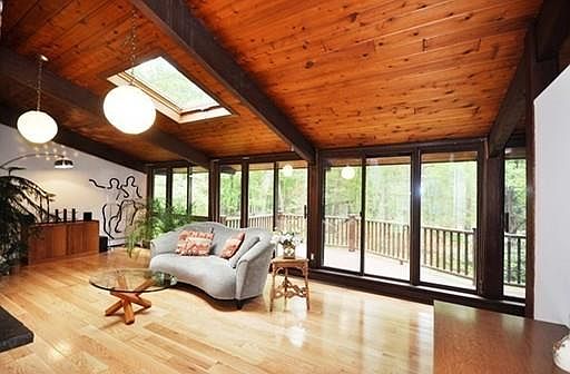 Nestled on two private acres, this traditional 3 bedroom contemporary Deck home offers "an efficient post and beam building system with exposed structure, making a powerful statement of beauty, strength and function". The main level has hardwood floors and walls of glass connecting to a sweeping deck with vistas of the natural grounds beyond. The living room, dining room and kitchen link beautifully together for entertaining and in summer open up to the screen porch and deck. The living room and kitchen both have skylights allowing light to stream in. The living room has a lovely brick fireplace for the winter evenings. The master suite is also on this level. The warmly carpeted and fire-placed family room is on the lower level together with two bedrooms, bathroom and laundry. Carlisle, just 20 miles NW of Boston, is located just off Interstate 495, a great location for those working in the technology sectors in the area, with rural appearance, strong community spirit & great schools
