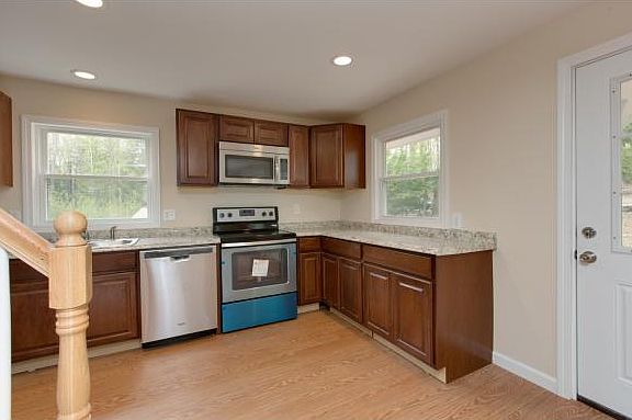 Wow! Completely remodeled 3 bedroom home with awesome yard and babbling stream. New kitchen with stainless steel appliances, New Roof, New FHA Heating system, New Bathroom, Every square inch has been freshly painted and New Flooring too! Step onto the brand new deck and take it all in. Barn/shed with new metal roof. You will love the open floor plan and spacious feel of this conveniently located home!