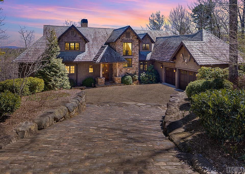 As you enter this home on the cobblestone driveway, the first thing that you notice is the attention to detail. The exterior features are a slate roof, stone, cedar shake and bark siding. Once you enter you are immediately drawn to the views of both Lake Toxaway and the Blue Ridge Escarpment. The living room features huge windows, a massive stone fireplace and open floor plan with well appointed eat-in kitchen and dining room.Off of the kitchen there is an inviting screened in porch with a grill area and fireplace.Master suite on main floor with attached office,walk-in closest and luxurious bathroom. Upstairs is a library/reading room with bedroom and bath. The lower level has a cozy media room, a massage and exercise room,wine cellar, 2 bedrooms, 2 baths, & a large covered deck. 2 car attached garage. The house is at the end of a quiet cul-de-sac. Makes a great place for entertaining. Golf cart distance to the club. This 10 year old home is being sold completely furnished!