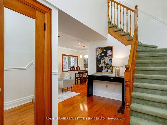 Step into this transitional-style gem, where timeless elegance meets modern comfort. With its striking stone facade and undeniable curb appeal, this home makes a lasting impression before you even step inside. Within, classic details and thoughtful design create a space that is both sophisticated and inviting. Stained glass fills the front bedroom with vibrant light, while a stone, wood-burning fireplace anchors the living room - perfect for cozy evenings or stylish gatherings. From the gracious entryway with 17' ceilings, to the bright, airy living spaces, including a main floor office/bedroom, spacious powder room and the rare main floor family room addition, every corner invites you to linger, offering the ideal backdrop for hosting, relaxing, and creating lasting memories. Beyond the walls, your private oasis awaits. Backing onto a park-like ravine, the backyard offers year-round natural beauty - imagine morning coffee with birdsong, afternoons on the deck beneath leafy canopies, and sunsets that feel painted just for you. This isn't just a home-it's a lifestyle, framed by nature yet steps from the best the area has to offer: desirable schools (Humbercrest P.S. Catchment), the Humber River trail, Baby Point Tennis Club, Summerhill Market, Transit, and the Junction/Baby Point dining scene. Opportunities like this are rare, don't miss the chance to live on one of the most coveted streets in the area with one of the most spectacular backyards on the street.