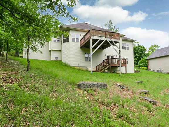 Beautiful home with a lake view! A 4 bedroom/3 bath home built on an acre lot with large decks on both levels to enjoy the Ozark Mountains and Table Rock Lake. Elegant 10 ft ceilings on both upper and lower levels, open floor plan, and living areas on both levels. The upper level features a cheerful eat in kitchen, formal dining, 2 sided fireplace in the large living room, and a mega master suite with a large bathroom featuring a jetted tub and plenty of walk-in closet space, plus a laundry room. The lower level boasts 2 spacious guest bedrooms with large closets and a 3rd non-conforming bedroom. The game room and living room are both spacious and there is plumbing installed for second kitchen( mother-in-laws quarters or wet bar). A full bath, storage rooms, a safe room, along with access to a large deck completes this lower level of the home. This quiet and convenient location has easy access to the lakes, attractions and connecting roads for commuting. The over sized 3 car garage has a level driveway and space for a work bench. No HOA. This home is very tidy and been well maintained. One year home warranty included.