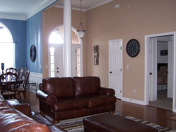 Dayton II plan with an exceptional floor plan and lots of storage space. Very open living spaces, split bedrooms. Three bedrooms, including master suite on main floor. Great Jack and Jill bath between two guest rooms! Guest suite with full bath or bonus upstairs. 12 ft. ceilings in entry and formal dining, 9 ft throughout main floor. HW flooring in entry, great room and dining. Kitchen and baths have ceramic tile flooring. Lovely master suite with large bath offering extra large size walk in closet, dual vanity sinks, garden tub, separate shower and private commode area. Walk in closet in the hall (the golf club closet) and upstairs has three attic entrances for exceptional storage capacity. Back yard is perfect for entertaining with covered patio, additional open patio and privacy fence.Wonderful home for entertaining family and friends! Priced well below purchase and tax assessment! Square footage is approximate. Buyer needs to verify if important.