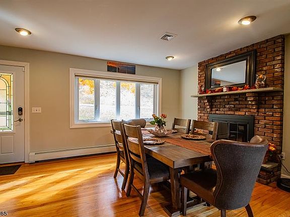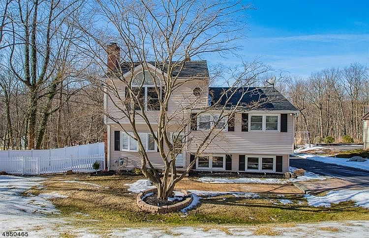 Super split level on one of the best streets in Kinnelon. The kitchen is nicely renovated with granite countertops, hardwood floors, recessed lighting, and stainless steel appliances, out to deck. There are beautiful bow windows in the dining room and kitchen, with recessed lighting and a wood burning fireplace. Hardwood floors upstairs as well, with 2 bedrooms and office area on the next level and master bedroom and bath on the upper level. Master has vaulted ceilings, recessed lighting, walk in closet, and fabulous master bath. Recently renovated bath features large jetted tub, and separate stall shower with double sink vanity. The home features central air conditioning, and internet based thermostats, cameras, and smoke alarms throughout.