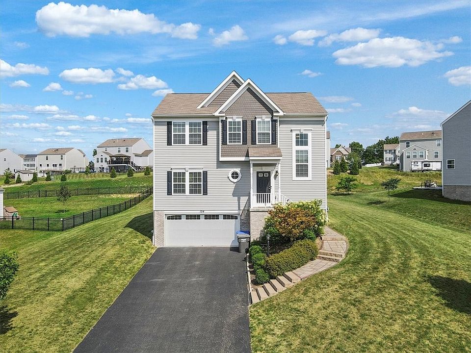 Still time to get in before school starts! This 4 bedroom home is only 6 years old and located on a large lot in the desirable community of Wilson's Ridge. Long flat driveway, beautiful stone steps and walkway, and covered front porch all lead to an open 2 story foyer. With the flexible floor plan that this home offers, you are able to utilized the space in a way that meets your needs. Possible den/living room open to large family room with gas fireplace. Bright kitchen has new lighting, new cabinet hardware, large island and dining area. Sunroom can be used as a dining room, sitting room or play room. Composite deck provides great views of the large back yard. Side staircase leads to laundry and 4 bedrooms. Master offers walk-in closet and on-suite bath with 5ft tile shower. Additional bedrooms are spacious with over head lighting, blinds and large closets. Lower level is ready to be finished.