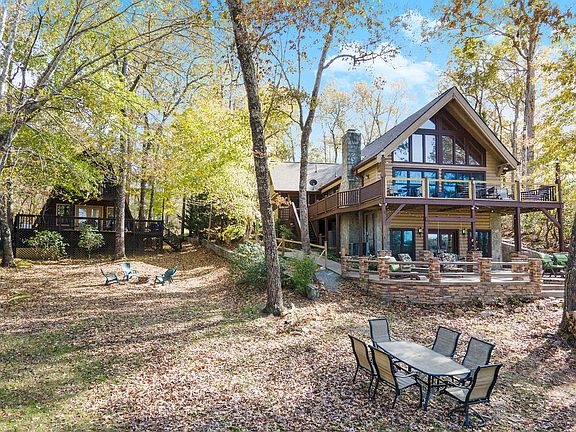 LAKEFRONT! 2 elegant mtn homes resting on 1+ acre on pristine Lake Blue Ridge. Room for the extended family. Main lodge boasts 4BR/3.5BA, rich detail, gourmet kitch, grand great rm, master on main, screened porch, wraparound main level deck & lower level patio. Finished Terrace level has game rm, bedrms, fireplace & kitch/bar. Next door house #2 is a charming A-Frame w/ 2BR/2BA, cozy living, upscale kitch & dbl decks. Both homes have lakeview & gentle walk to shore. Current 2-story swim dock w/plan for dbl slip dock to be included. Proven rental history. Shown By Appt.