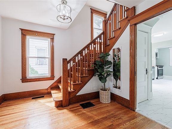 "Contemporary meets Classic". Built in 1913, this Maplewood home blends original charm with modern updates. Original hardwood floors, gumwood trim, and solid wood doors with original knobs. The updated kitchen features water resistant luxury vinyl tile flooring, new white shaker cabinets, butcherblock countertops, and new stainless steel appliances! On the first floor you'll also find a FULL bathroom featuring 1ST FLOOR LAUNDRY hookups. On the second floor are 3 bedrooms and another full bath. A full, finished attic offers another possible bedroom, office, home gym space or storage! FULL TEAR OFF ROOF. Vinyl windows. Detached garage with new garage door. Partially fenced yard. Delayed negotiations - offers due Monday July 1 at 6pm.