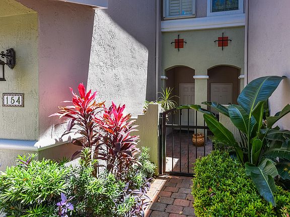 This beautiful, gently lived-in townhouse feels like a private home, boasting so many wonderful features! French doors in the living room open onto a screened porch & your own tropical backyard oasis ! The 25'x25' paver patio, complete with palm tree feature, is fenced-in & extremely private. Inside, find an eat-in Kitchen with granite counters, oak hardwood cabinets, a large pantry, nearly new stainless appliances & an eat-in area. The first floor den can be used as a TV room, office, or enclosed for a 4th bedroom. Upstairs, find a HUGE master bedroom with soaring ceiling, cozy sitting area, & master closet the size of a small room! The master bathroom features his-and-hers vanities, a separate shower, and roman tub. Plantation shutters grace the home throughout. The up-