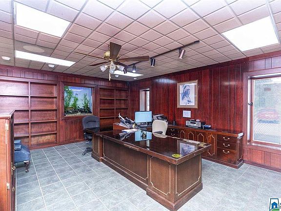 Property is recorded as 4 acres located hwy 31(Pelham Parkway) minutes from the Verizon Amphitheater. Office has mahogany doors & paneling throughout, tile flooring, with quality decor & lighting. 16 spacious private offices. Owners office has a private route into the back parking(escape exit), its own bathroom & a self contained Aquarium. Total of 3 bathrooms in the building. Conference room, 2 file rooms, 2 Kitchens (professional set up), Hugh pantry, Reception office, Overhead storage, loading dock in the back with 2 commercial garage doors, 10 parking spaces on the side, electric security gate, 3 commercial grade HVAC systems. Three separate buildings. Wired security system with exterior motion lights & property is completely fenced. Bld1 40 X 80 Metal with 12 ton overhead lift crane.-Bld2 30 X 40 Bld3 60 X 80 has half bath All buildings have multiple garage doors, freeze proof exterior water faucets,heat, & commercial grade electrical for equipment.