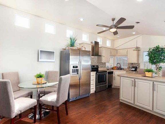 Beautifully upgraded, rare 2 bed/ 2 bath park model home with an Arizona room in Golden Vista RV Resort. Comes furnished including TVs! You own the land! Gorgeous wood flooring in the large living room and bedrooms. Classic kitchen with large island breakfast bar and stainless steel appliances, including Frigidaire dishwasher and KitchenAid double-door fridge. Master has an electric bed and lovely 3/4 bath with walk-in shower. Washer/dryer included. New A/C installed June 2018. Water softener. The community has lots to offer with a heated pool and spa, fitness center, club house and more! The friendly guards on site will make you feel extra safe in this gated community. Take a tour today!
