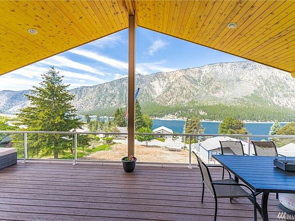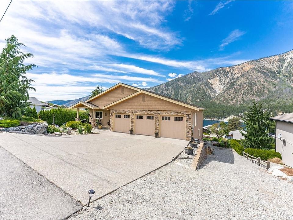 This immaculate home was built in 2009. Offering you 180 degree Lake Chelan, Slide Ridge, territorial, & mountain views. High quality construction, tastefully finishes include real hardwood floors, slab granite counters, massive kitchen. Easy single level living Master suite on main floor, with large guest living area in the lower level, including another Master suite & guest bedrooms. Nicely landscaped & low maintenance, 3 car garage & plenty of parking. Vacation Rentable