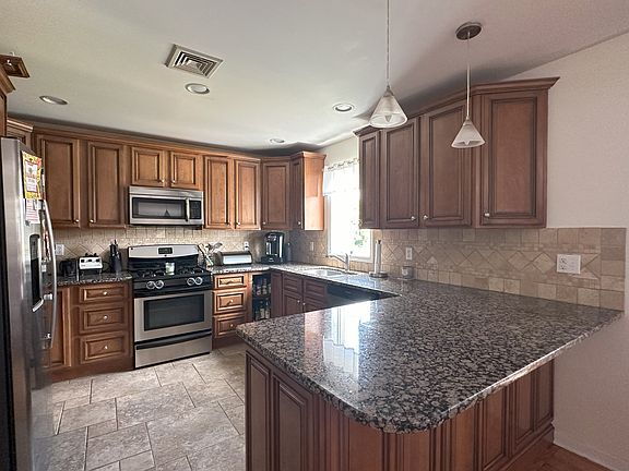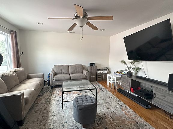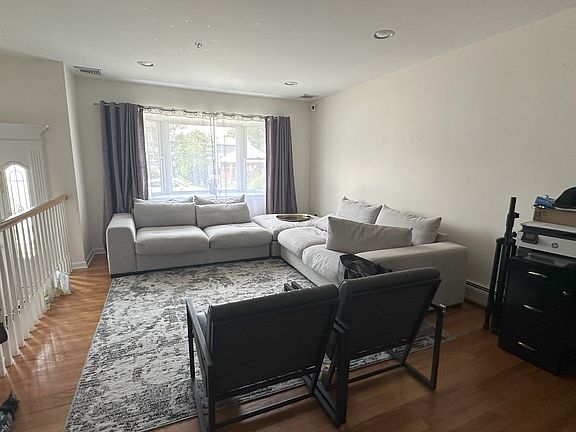 Spacious 4-bedroom, 2.5-bath Duplex offering 2,402 sq. ft. of living space. The first floor includes a living room, dining room, family room, and a kitchen with granite countertops and modern appliances. On the second floor, there is primary suite with large walk-in closet ,Jacuzzi tub, a 4' shower, a double-sink vanity with a granite countertop. Another Full bath also has a tub/shower combination and a double-sink vanity with a granite countertop. The unit boasts hardwood floors, central vacuum, lawn sprinklers, and ceiling fans in the bedrooms. Additionally, it has a paver driveway and walkways, an unfinished basement, and attic storage. Very close to NYC transportation and Elementary school. School bus to middle and High school comes in front of house.