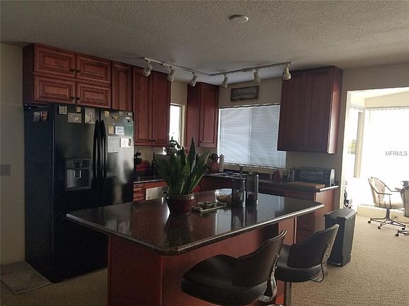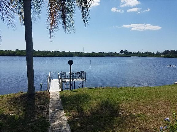 Every inch of the interior was upgraded in 2016, including new floors, ceilings, baths, kitchen and sound insulated drywalled walls. The interior includes an open kitchen/living room floor plan with high quality cherry cabinets, large kitchen island, wall to wall carpet, large closets and a unique master bedroom with a view of the river and a small dock. Riverfront living at its best and a must see! Sliding doors which open out to the gorgeous Myakka River! This home offers a dock for your private boat storage and a spa and outdoor shower. One of the most unique homes you will see in 55+ Lazy River Village.
