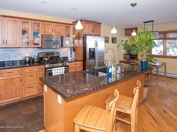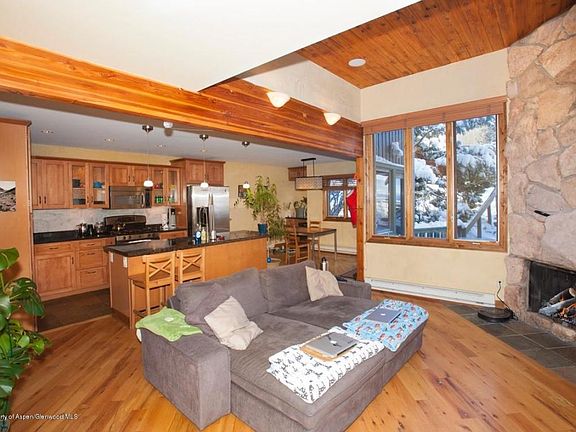 This two bedroom, two bathroom condominium lives like a townhome and is conveniently located in a quiet part of the Meadow Ranch neighborhood. The property was remodeled down to the studs in 2006 which opened up the main floor, added a 3/4 bathroom, and a separate laundry room. The large kitchen has newer appliances and marble counter tops. ''Cozy up'' in the living room with a wood burning fireplace, or plan your day in the heart of the Rocky Mountains from your master bedroom with a view of Mount Daly and Snowmass Mountain. The master bath has heated floors and double sinks. Generous storage space. 1 dog allowed for both owners and renters which makes this condo a great 1st home, vacation home, or rental investment. Great opportunity for the Aspen School District!