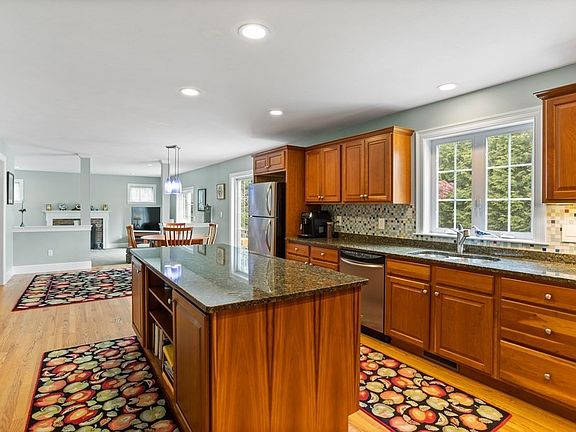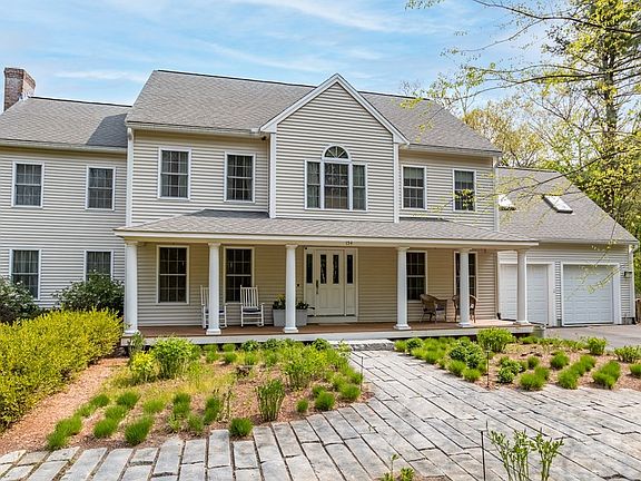 Tucked back from the road, nestled on a luscious 7+ acre PRIVATE lot, you will find this sunny and spacious four bedroom gem feauturing a timelss cherrywood kitchen, family room with cathedral ceiling, fireplace and slider overlooking the lush backyard. Mud room and half bath as you enter from garage, entertainment sized dining room and home office/living room round off the first floor. The second floor boasts a large 20' main bedroom suite with cathedral ceilings and recently remodeled bathroom with a gorgeous tiled shower, a soaking tub and double sinks with lots of storage. 3 additional bedrooms - one extra large at 18' with skylights - allows for many options and BONUS 2nd floor laundry! Outside features a Mahogany farmers porch, fenced in vegetable garden - beautful flowers and trees - special sitting areas amongst the plantings. The 24' trex deck is a perfect size for outdoor entertaining. This home was built by Master Builder Michael Dargin - truley a rare and special home.