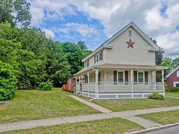 Welcome to 154 Montague City Rd, a captivating transitional-style home that seamlessly blends comfort and elegance. This inviting residence boasts an open concept layout on the first floor, highlighted by an updated kitchen with sleek stainless steel appliances. The dining room features a large sliding door that opens to a side deck, perfect for entertaining. Hardwood floors flow throughout, lending a touch of sophistication. A cozy living room, convenient first-floor laundry room, and a half bathroom complete the main level.Upstairs, three bedrooms await, including a primary suite with a half bathroom and a spacious walk-through closet. The second floor also offers a full bathroom and an additional half bath for added convenience.The exterior of the home showcases a storage shed, a wrap-around porch, and a paved driveway. Experience the seamless blend of comfort and style that 154 Montague City Rd offers.Don't miss this remarkable opportunity to call this transitional-style home