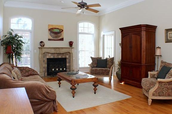 Traditional Cambria Place home in excellent location! Open plan LR/DR, Gas log FP, high ceilings, grand windows, HDwd floor. Beautiful tile work, moulding, FP mantle. Large 1st floor MBD w/trey ceiling; Gorgeous MBA w/Dbl vanities, jetted tub, sep. shower. Open Kit/Breakfast/Family Rm. Gas Range, Custom cabinets. BD 2 on 1st flr. BDs 3 & 4, Loft, walk-in attic access 2nd floor. Amazing storage, partial basement,Sealed crawl,Huge Gar.,Back deck.