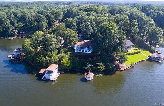 From the time you enter the front door the views will take your breath away in this custom home built to take full advantage of the unique main channel point location! Over 200' of shoreline, trees, landscaping, and the position of the home, create both panoramic views of beautiful Lake Tillery and also privacy from neighbors. The large great room, kitchen, both main level master suites, and the screened porch all have stunning long range views. The downstairs is completely finished and could be used as a second living quarters with a second kitchen, great room, master suite, bonus rooms and covered patio. Recent renovations include attractive gray exterior paint with white trim, new energy efficient glass doors, new outdoor carpet and roofing on the boathouse and major sections of the pier including the gazebo and covered deck. The interior section of the covered boathouse has not been repaired. Deep water, a water slide, and a diving board add to the fun! Priced below tax value.
